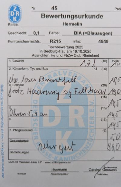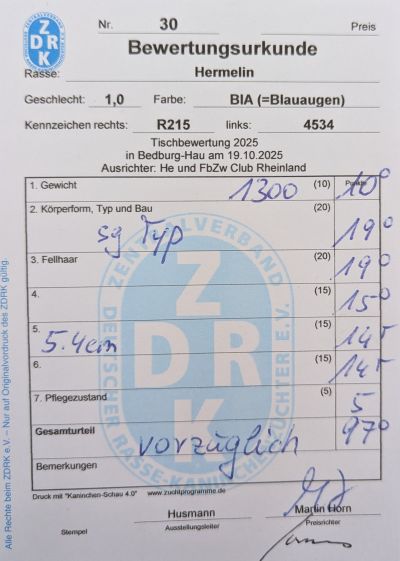 Ich stehe auf der Landesschau am 06/07.12.2025 in Kevelaer zum Verkauf |