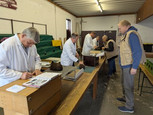 Am 19.10.2025 war ich bei der Tischbewertung vom He u. Fbzw Club Rheinland in Bedburg – Hau am Start. Bei den He Bla konnte ich den Titel des Rassemeisters mit 388,0 Pkt. erfolgreich verteidigen, außerdem konnte ich die Siegerhäsin mit 97,0 Pkt. stellen. Bei den Fbzw, Blau konnte ich in der Kollektion 385,5 Pkt. sammeln. Insgesamt worden 220 Zwerge den PR. vorgestellt, auch diesmal gebürt Gerda u. Heinz Jansen sowie den Mitgliedern des R184 Bedburg-Hau ein Dank, für die optimale Verköstigung und die Bereitstellung des Vereinsheim.